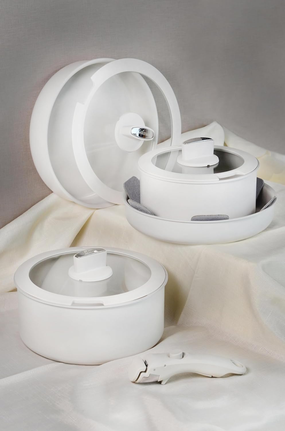 Belariva-Easy Cook Çıkarılabilir Saplı 8 Parça Tencere Seti Beyaz