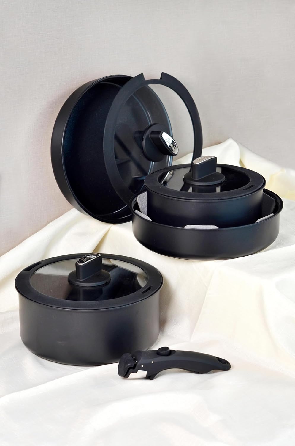 Belariva-Easy Cook Çıkarılabilir Saplı 8 Parça Tencere Seti Siyah