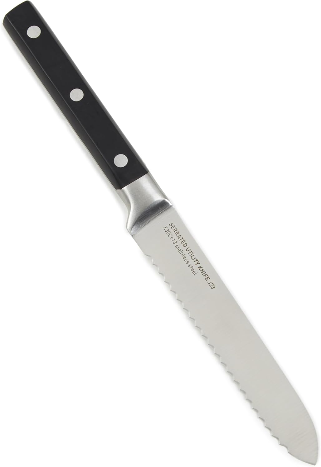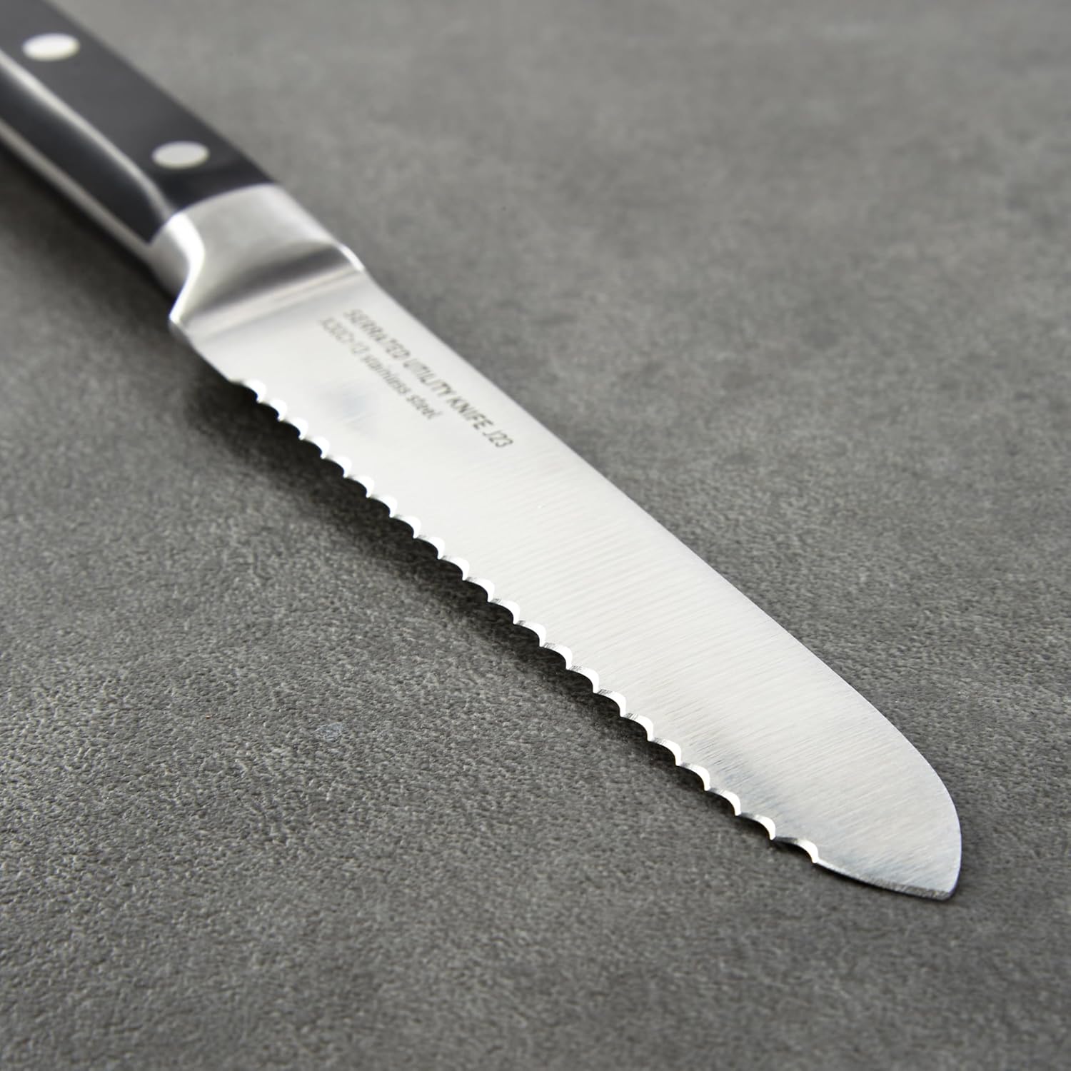 Taze ekmek ve simit dilimlemek için tırtıklı maket bıçağı kullanılabilir. Bıçak, meyve ve sebzeleri kesmek için uygundur. Dövme tırtıklı paslanmaz çelik bıçak ve üç perçinli konturlu sap özelliklerine sahiptir. Elle bilenmiş bıçak, dövülmüş paslanmaz çelik malzemeden üretilmiştir. Gövde malzemesi 18/10 paslanmaz çelik, kulp malzemesi üç perçinli ABS’dir. Elde yıkanması önerilir.