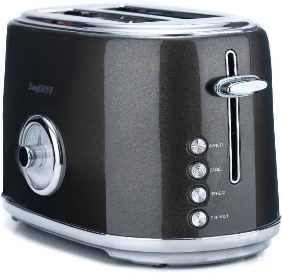 BergHOFF Gem Metallic 2 Dilim Ekmek Kızartma Makinesi – 815 W, Paslanmaz Çelik Gövde | Gri