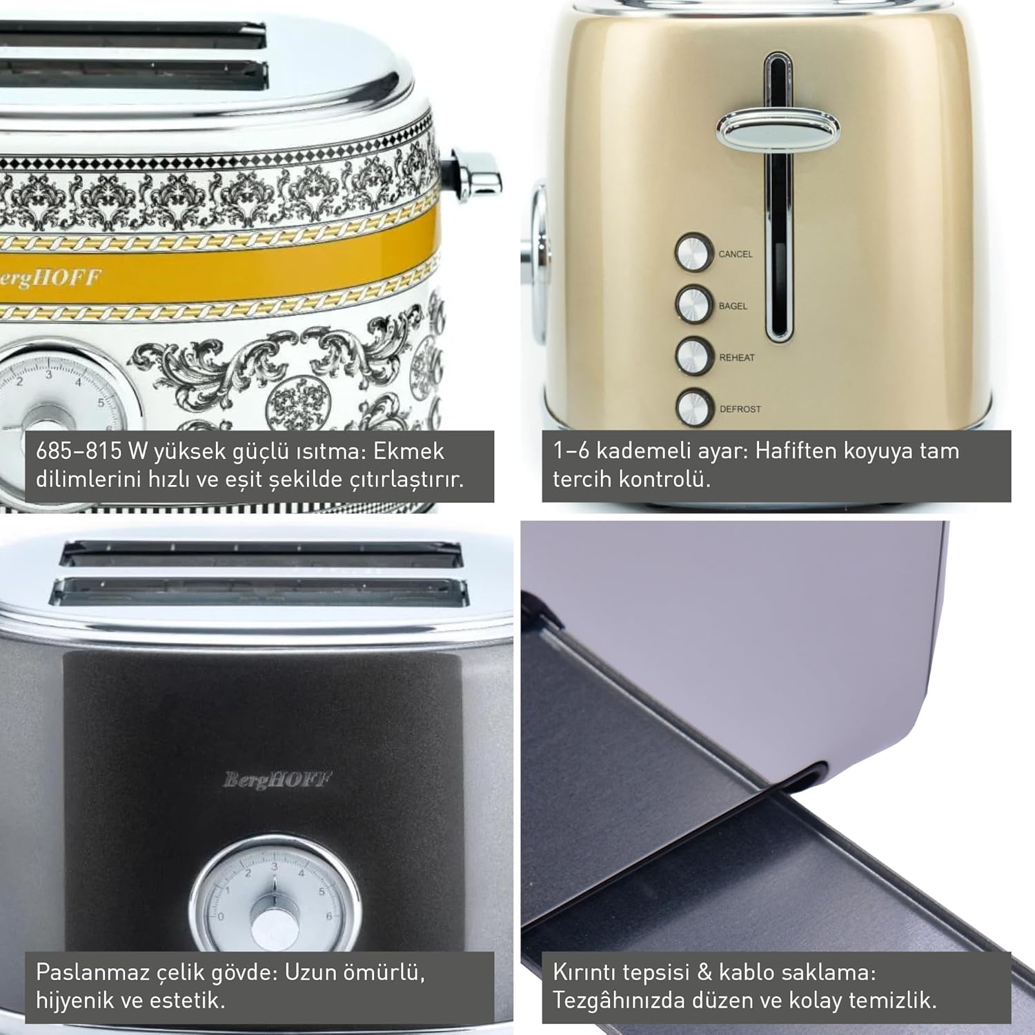 “BergHOFF Gem Metallic 2 Dilim Ekmek Kızartma Makinesi – 815 W, Paslanmaz Çelik Gövde | Gri” için yorum yapan ilk kişi siz olun