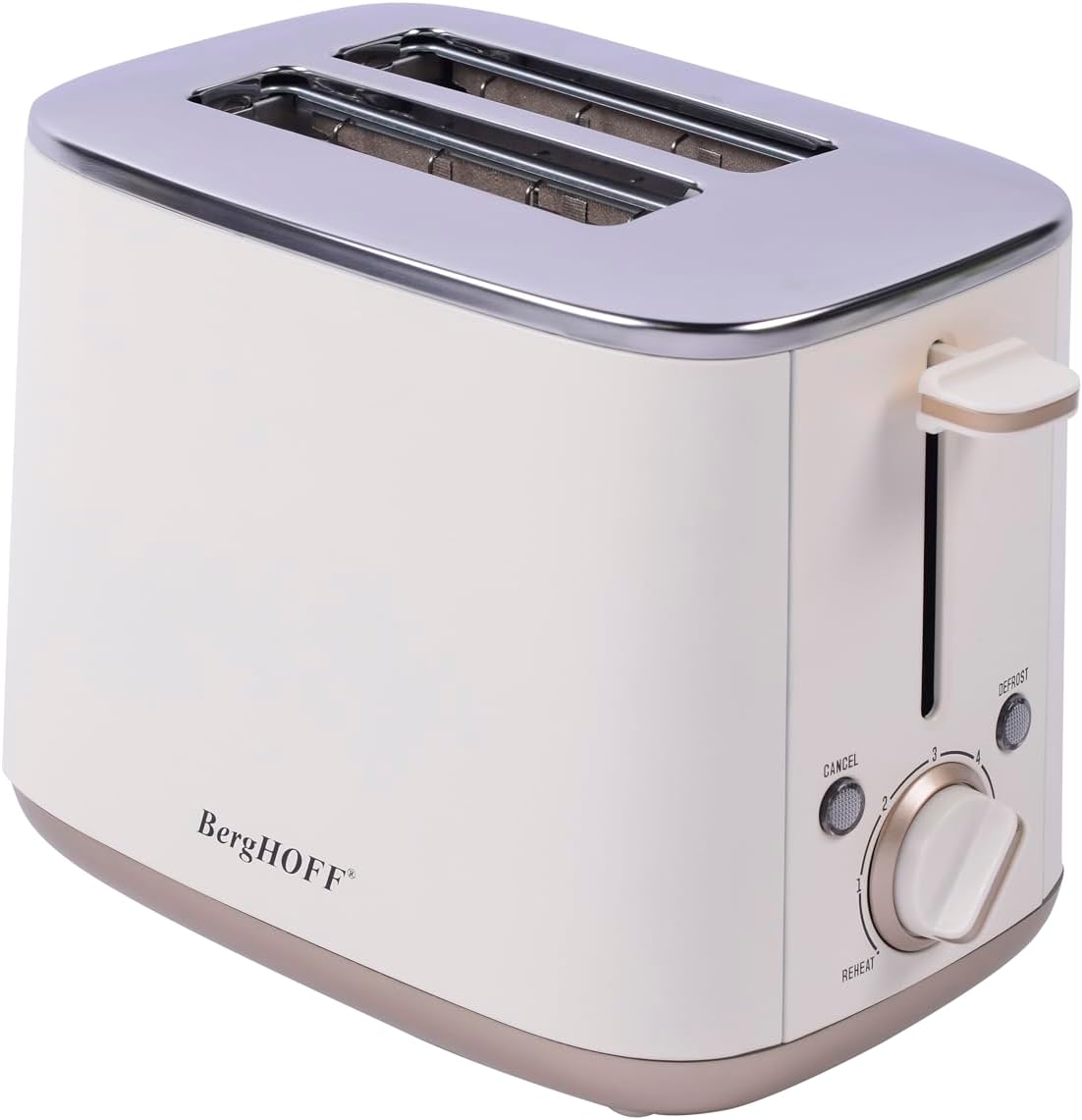 BergHOFF Gem Pearl 2 Dilim Ekmek Kızartma Makinesi – 1000 W, Paslanmaz Çelik | Vanilya Krem
