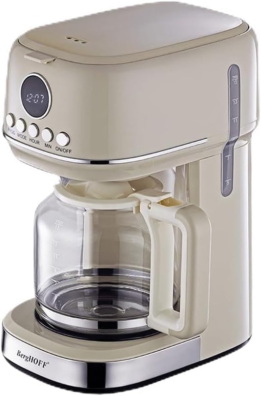BergHOFF Gem Retro Filtre Kahve Makinesi – 900 W, 1, 5 L Cam Demlik | Vanilya Krem