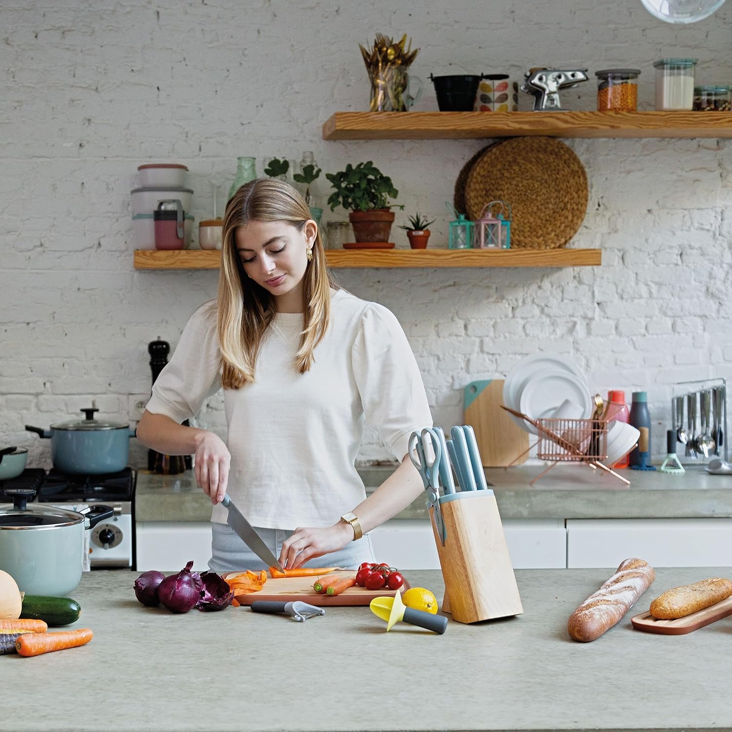 Bıçak koleksiyonunuz ne kadar geniş olursa olsun, her seferinde kendinizi bu santoku bıçağına uzanırken bulacaksınız. Bu Japon tarzı bıçağın en iyi yaptığı şey dilimleme, küp küp doğrama ve kıymadır. Çarpıcı parlak sap, her mutfakta sert görünüyor. Birbiriyle uyumlu iki renk arasından seçim yapın ve bu parlak kaplama bıçaklarıyla mutfağınızı aydınlatın. ÖNE ÇIKAN ÖZELLİKLER Geniş bıçak ağzı, sarımsakları ezmeyi veya doğranmış malzemeleri aktarmayı kolaylaştırır Çeşitli görevler için çok yönlü bıçak Parlak kaplamalı sap Keskin paslanmaz çelik bıçak Temizlemesi kolay