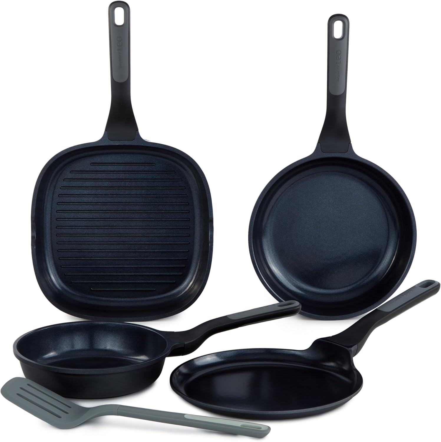 LEO STONE dört parçalı yapışmaz alüminyum döküm kızartma tava seti. Set içeriğinde farklı boyutlarda tavalar bulunmaktadır. Alüminyum döküm malzemeden üretilmiş olan tavalar yapışmaz özelliğe sahiptir. Tavalar indüksiyonlu ocaklar hariç tüm ocak türlerinde kullanılabilir. Bulaşık makinesinde yıkanabilir. Tavalar siyah renktedir.