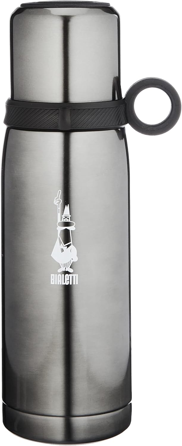 Bialetti – Termos – 460mL – Koyu Gri Renk – Paslanmaz Çelik – Çift Katmanlı – 12 Saat Sıcak 24 Saat Soğuk Tutar – Bardaklı Kapak Özelliği