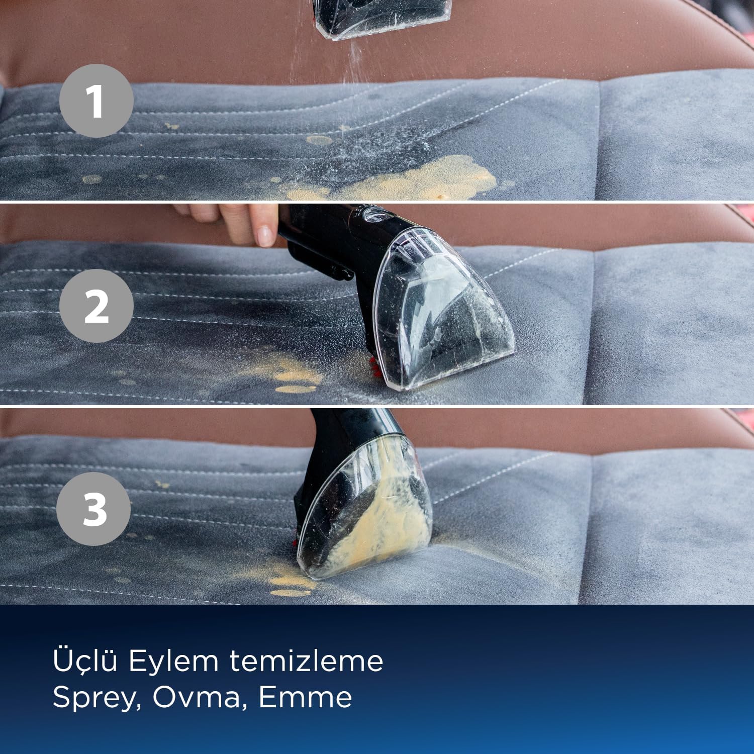İnatçı kir ve lekeler için özel Bissell deterjanına sahiptir.