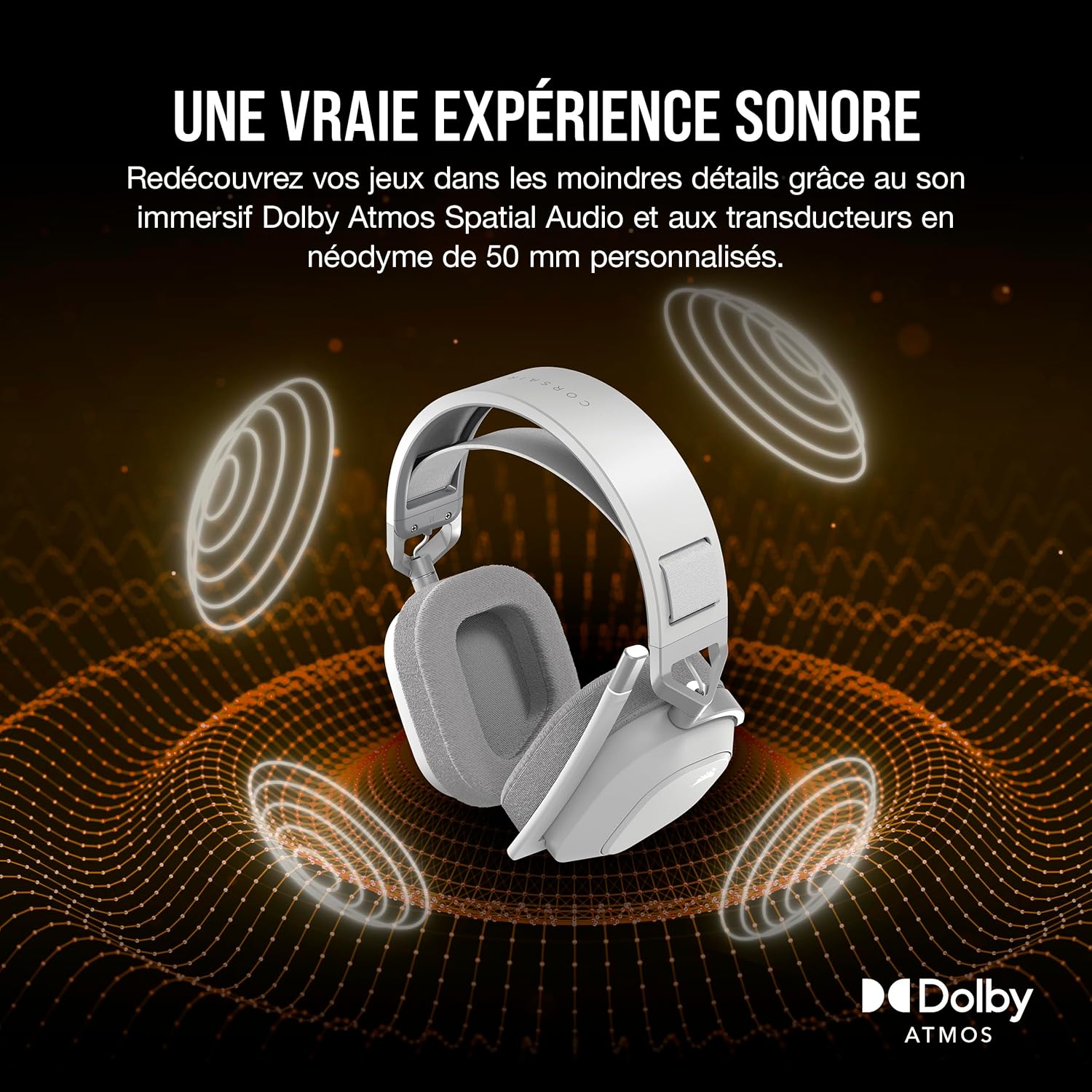 Corsair HS80 MAX kablosuz çoklu platform oyun kulaklığı, Bluetooth’lu – Dolby Atmos – yayın kalitesinde mikrofon – iCUE uyumlu – PC, Mac, PS5, PS4, Mobile – Beyaz