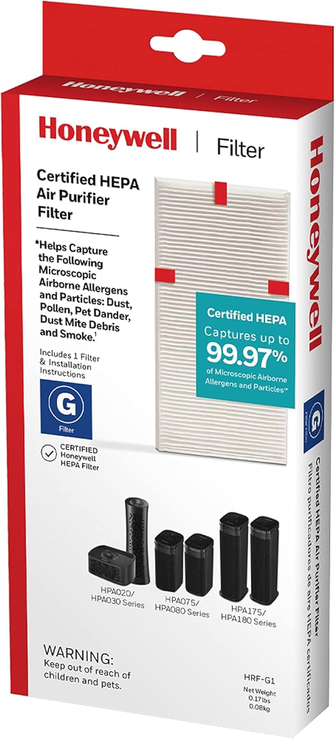 Honeywell HEPA Hava Temizleme Filtresi G, 1’li Paket – HPA030/HPA080 ve HPA180 Serisi için – Havadaki Alerjen Hava Filtresi Orman Yangını/Duman, Polen, Pet Dander ve Tozu Hedefler