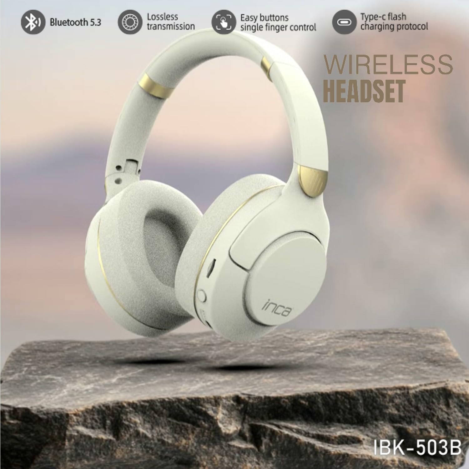 Inca IBK-503B Kablosuz 5.3 Bluetooth Hafıza Kart Destekli Kulak Üstü Kulaklık Beyaz 12 Saat pil ömrü 400Mah dahili Pil Arama Yanıtlama/Aramayı Sonlandırma/Ses Kontrolü/Duraklatma/Başlatma