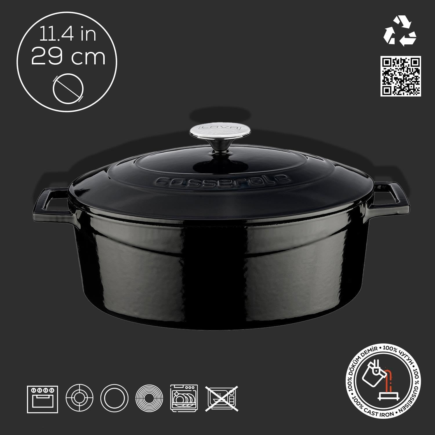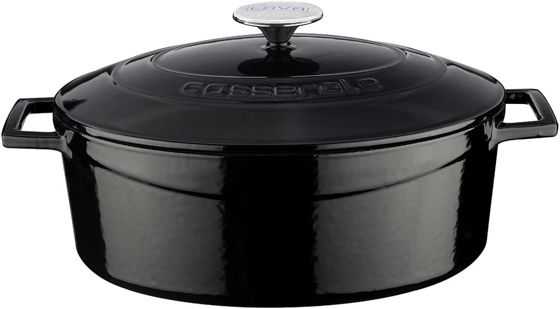 Lava Metal Oval Döküm Tencere, 29 cm, 4.67 L Hacim, Siyah