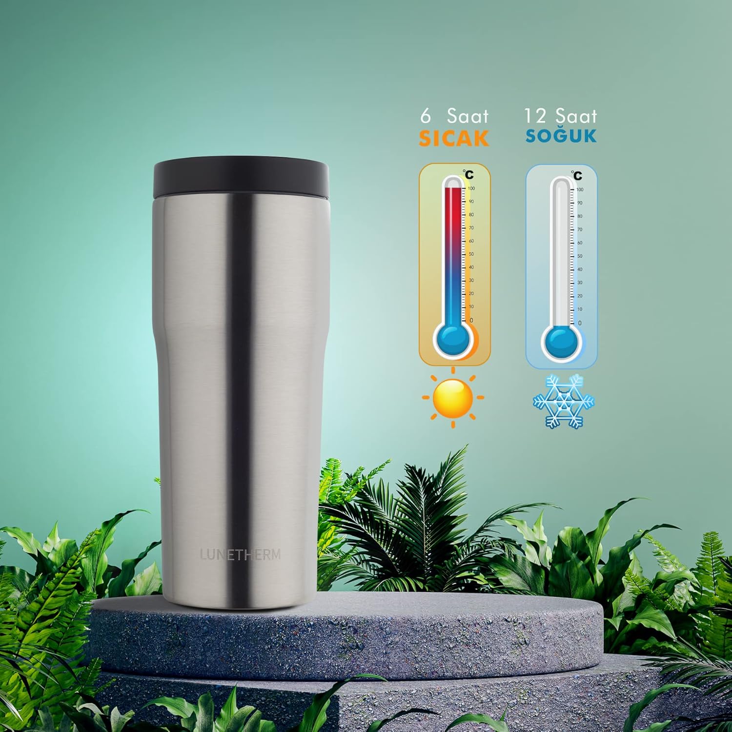 Lunetherm Coffee Mug Termos’larda SUS304 paslanmaz kaliteli çelik kullanılır. Bu gıda dostu çelik sayesinde ürününüzü güvenle yıllarca kullanabilirsiniz.