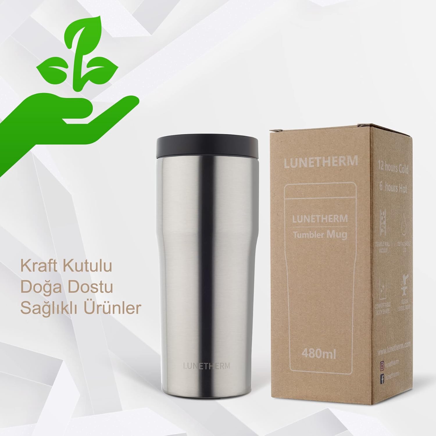 Lunetherm Coffee Mug Termos’un optimum ürün boyutları ve tasarımı, bu hafif ama sağlam kahve termosuna çok çarpıcı bir hava katarken, 480ml kapasite de kullanıcılarına doyumsuz bir kahve deneyimi sunar.