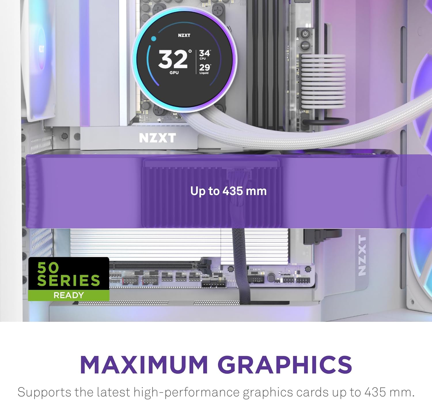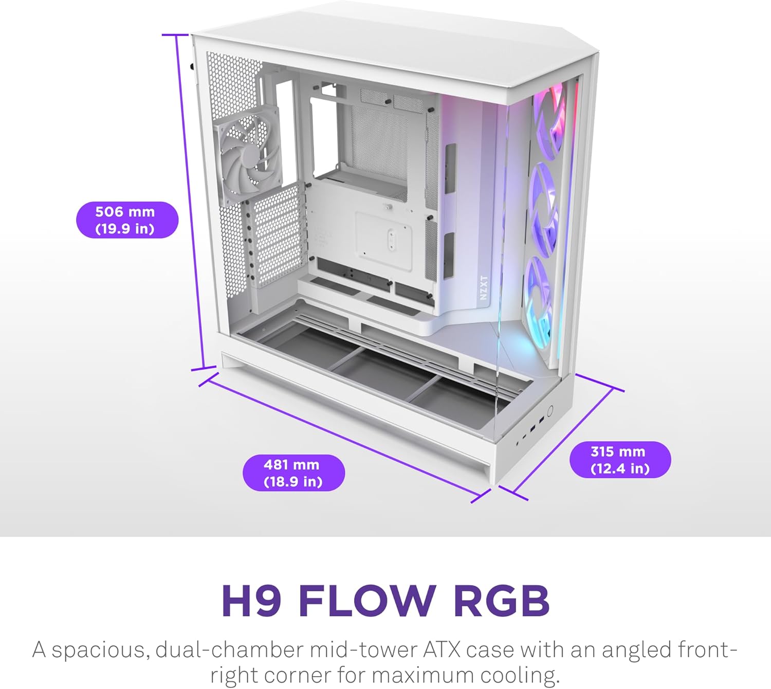 NZXT H9 Flow RGB (2025) – Büyük Çift Bölmeli ATX Mid-Tower Airflow Bilgisayar Kasası – 1 x 420 mm RGB Fan Birimi ve 1 x 120 mm Fan – 420 mm Radyatör Desteği – Sertleştirilmiş Cam – Beyaz