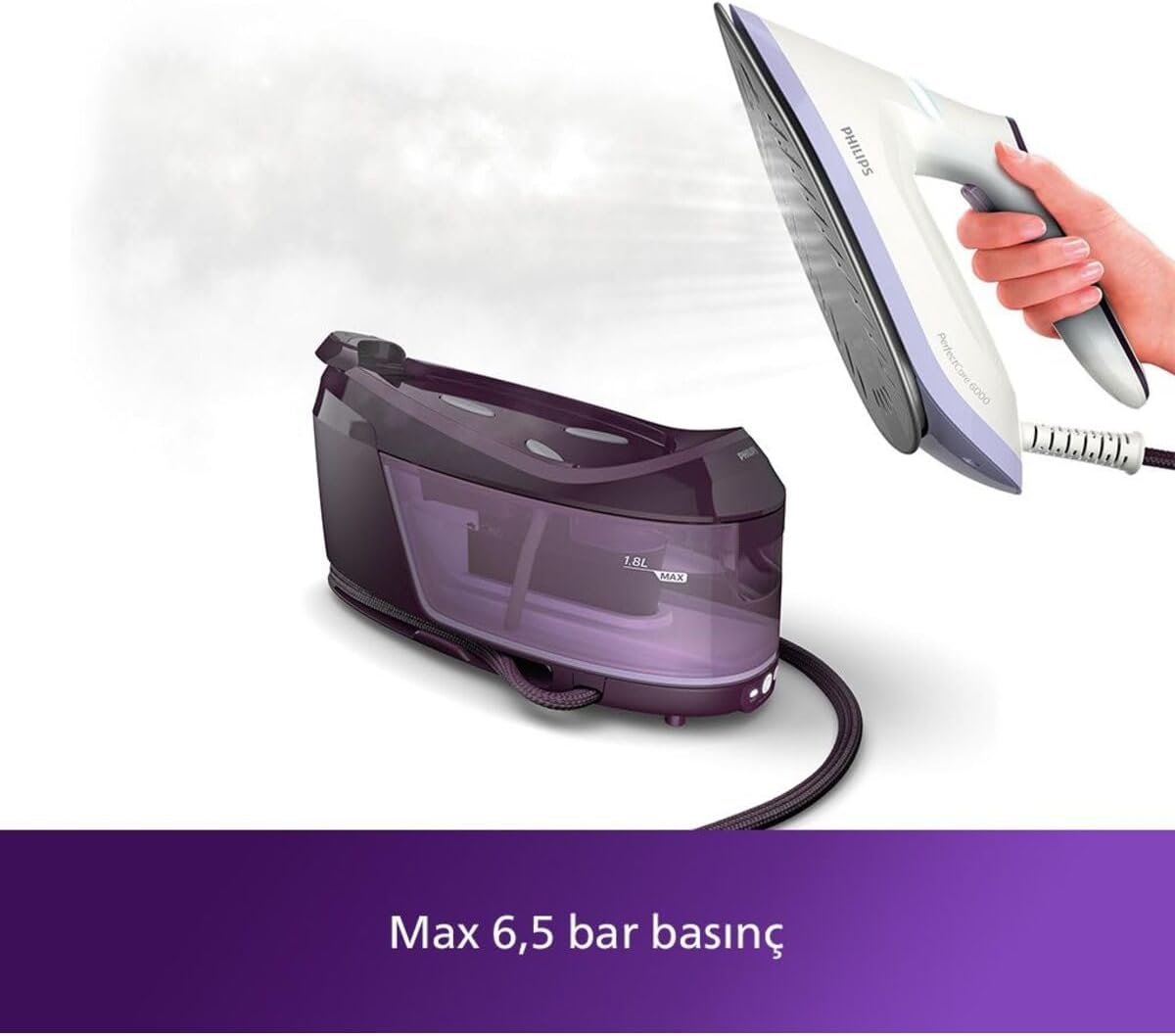 Philips 6000 Serisi Perfectcare Buhar Kazanlı Ütü, Güçlü Buhar, 1,8 l Çıkarılabilir Su Haznesi, Sıfır Yanık Riski, PSG6024/30
