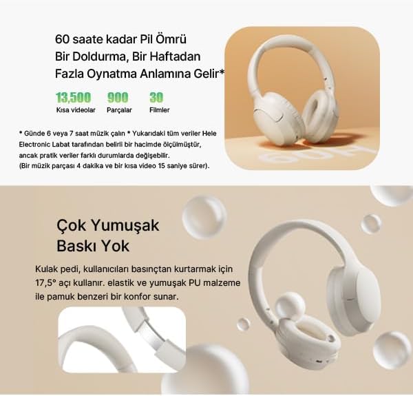 70 Saatlik Pil Ömrü ve Hızlı Şarj: Günde 8 saat müzik dinlerseniz, 70 saatlik pil ömrü sunar ve yalnızca 1,5 saatte tamamen şarj olabilir.