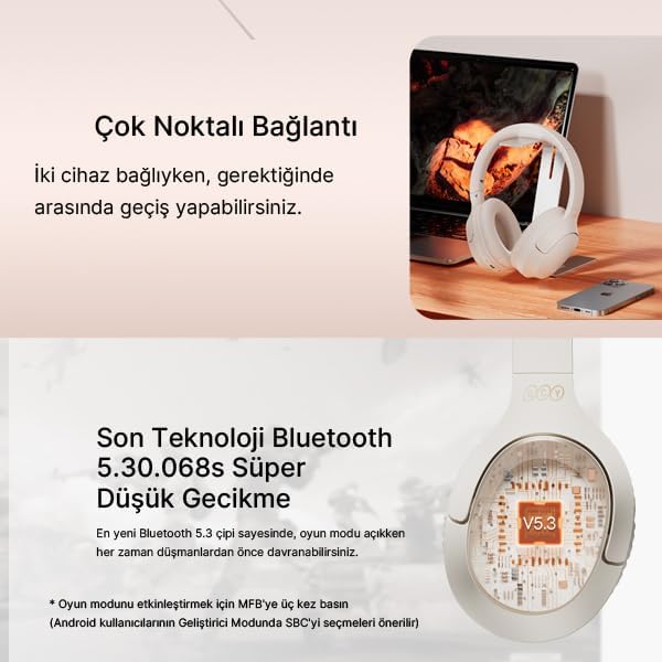 QCY H2 Pro Aux Kablosuz Bt 5.3 Beyaz Kulaklık Hifi Enc 70 Saat Dinleme Oyun Modu