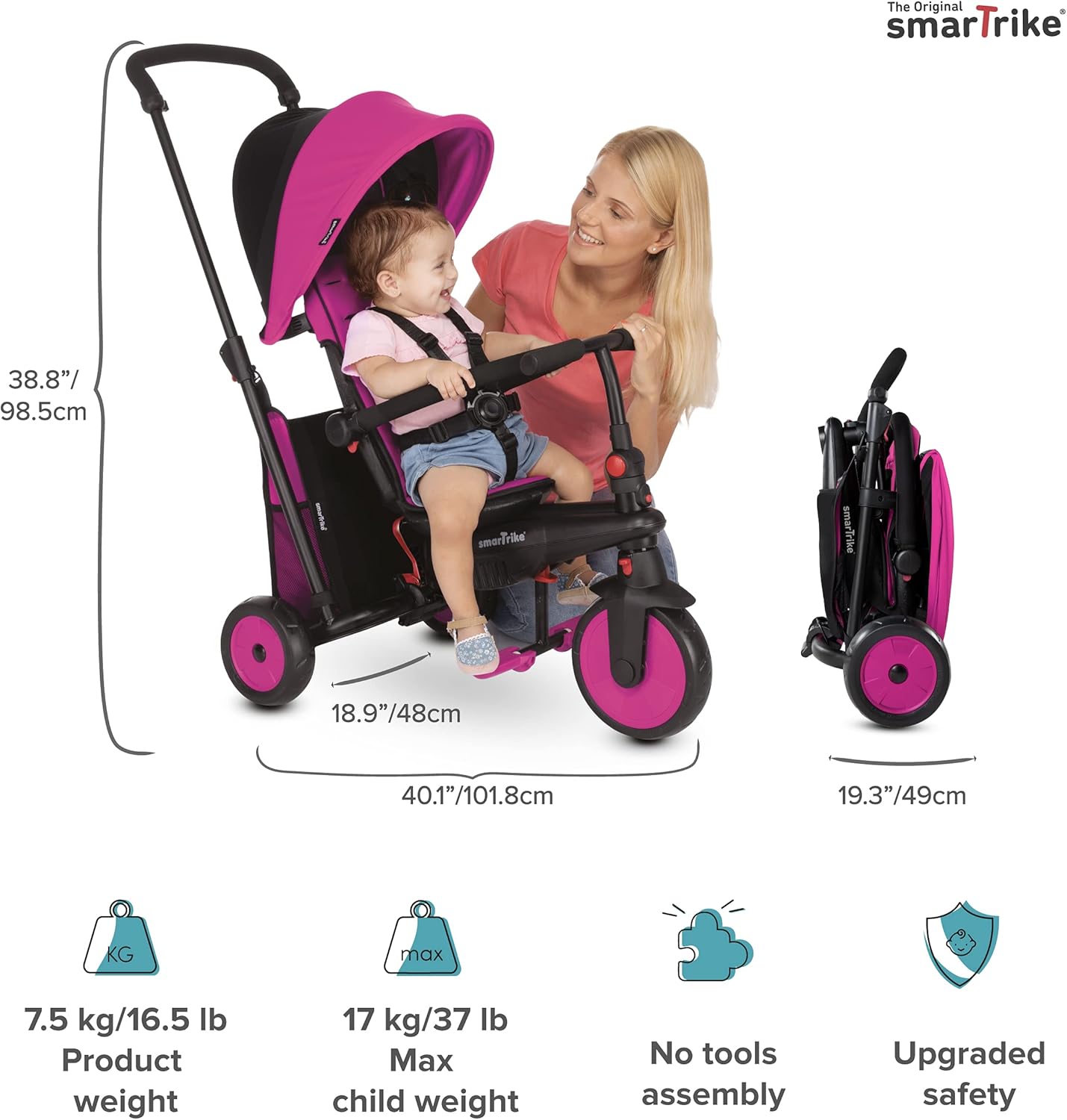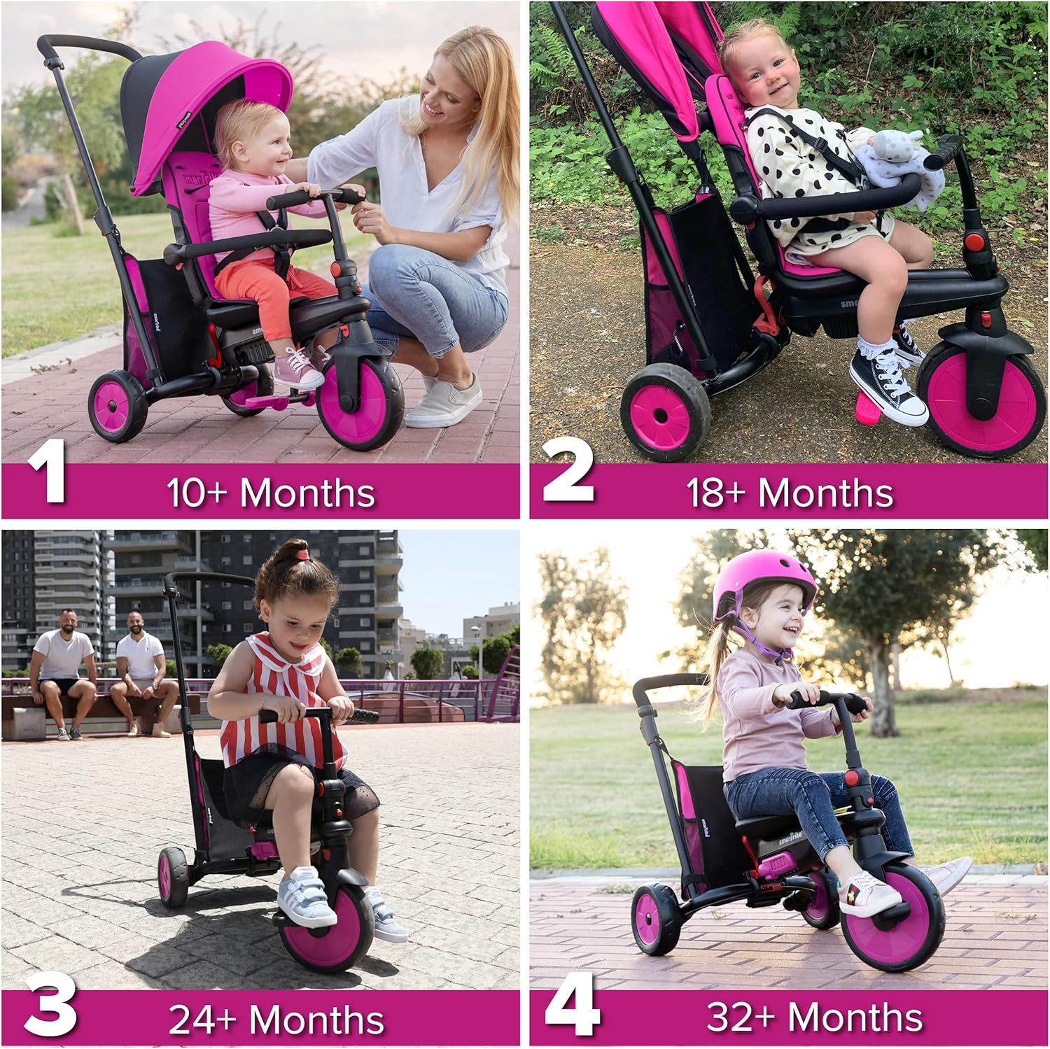 SmarTrike STR3 Plus 5’i 1 Arada Modüler Katlanabilir Bebek Arabası ve Üç Tekerlekli Bebek Bisikleti – Pink