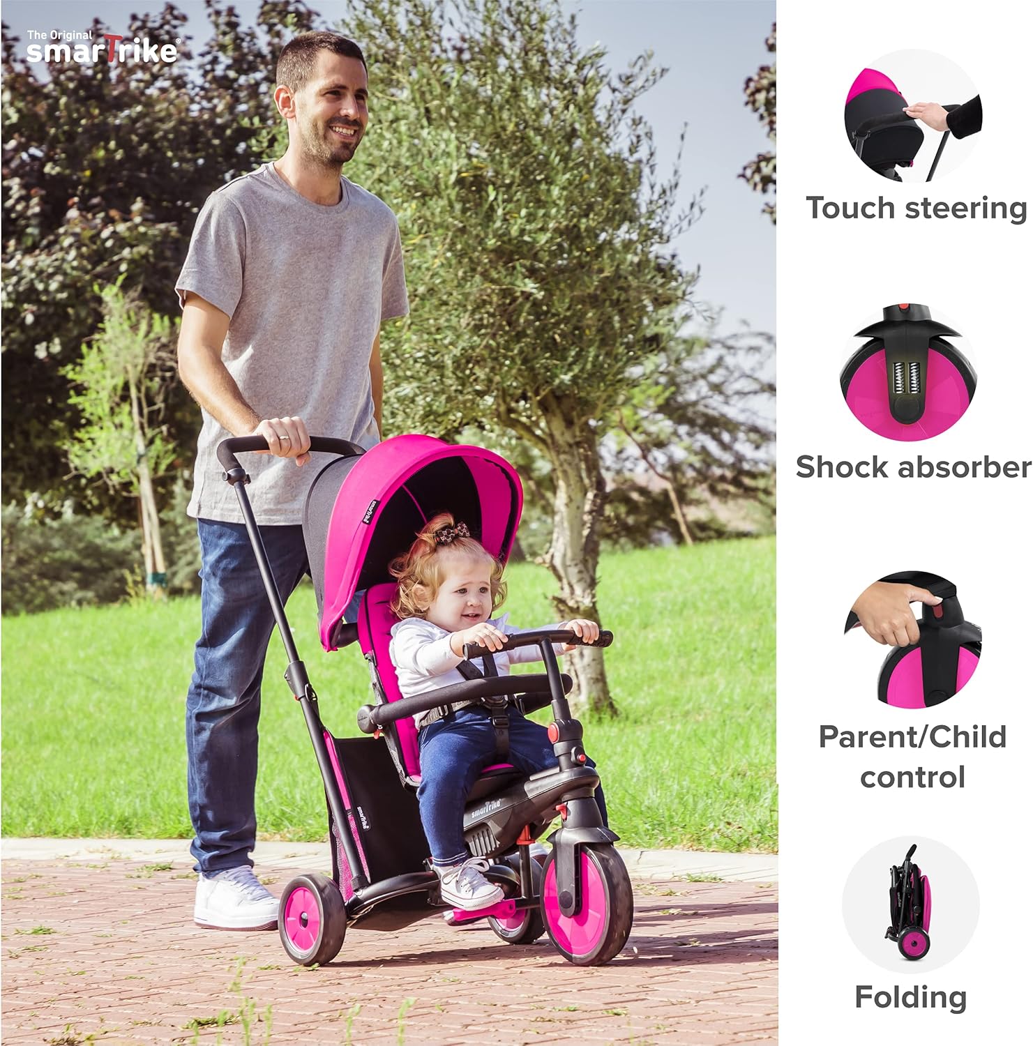 Ebeveynler için yapılmıştır “Uygun taşıma ve depolama, gezinti ve zahmetsiz temaslı direksiyon teknolojimizi kullanarak kolaylıkla kolaylıkla bir kaç tıklamayla katlayın ve bir anda çocuğunuza yönelme kontrolünü ele geçirin.; Çocuklar için yapılmıştır. Bebekler için bebekler için bebekler için, tam bir yürümeye başlayan bir üç tekerlekli bisikletten 3 aydan 3 yaşına kadar olan üç tekerlekli bisikletten, 1 üç tekerlekli bisiklette SmartRike Str3 6, bebeğinizin bağımsız bir şekilde binmeyi öğrend