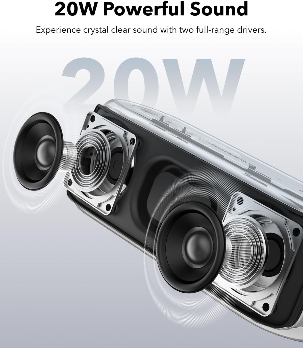 20W Stereo Ses ve Çift Tam Aralıklı Sürücüler: Çift tam aralıklı sürücüye sahip bu kablosuz Bluetooth hoparlör ile zengin 20W stereo ses ve netliği deneyimleyin.