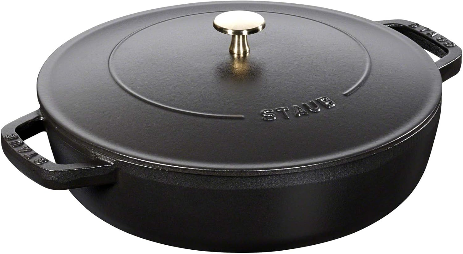 Staub 405114730 Chistera Kapaklı Sığ Döküm Tencere, 24 cm, Siyah