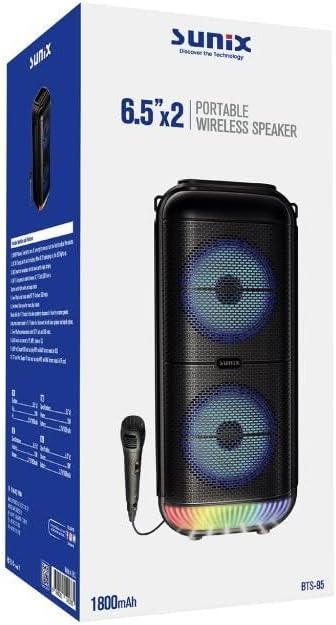 Sunix 1800 Mah 6,5″x2 Mikrofonlu Led Işıklı Bluetooth Hoparlör BTS-95