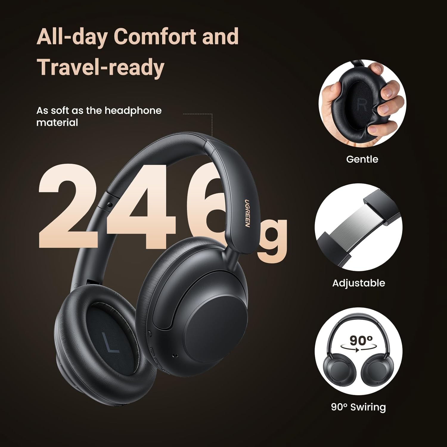 UGREEN HiTune Max5 Hibrit Aktif Gürültü Engelleyici Kablosuz Kulak Üstü Kulaklık, Siyah