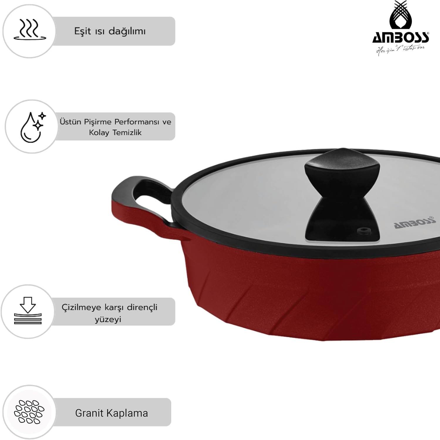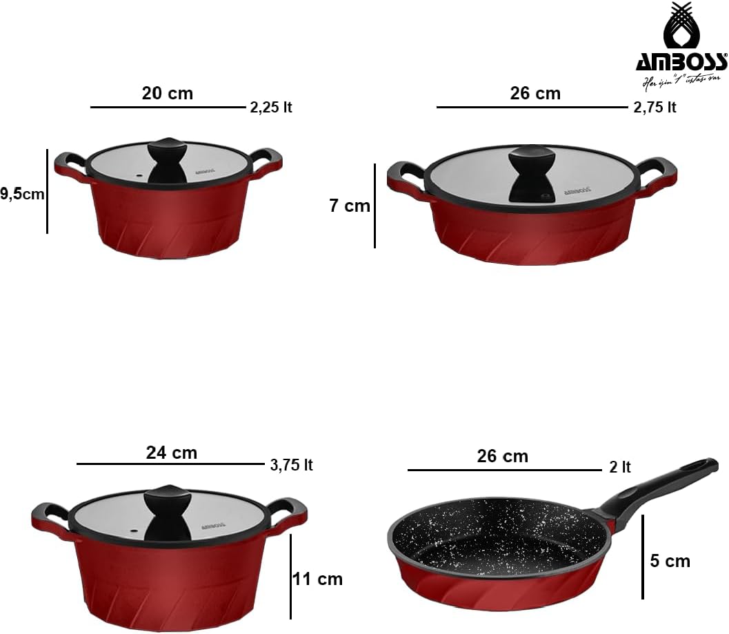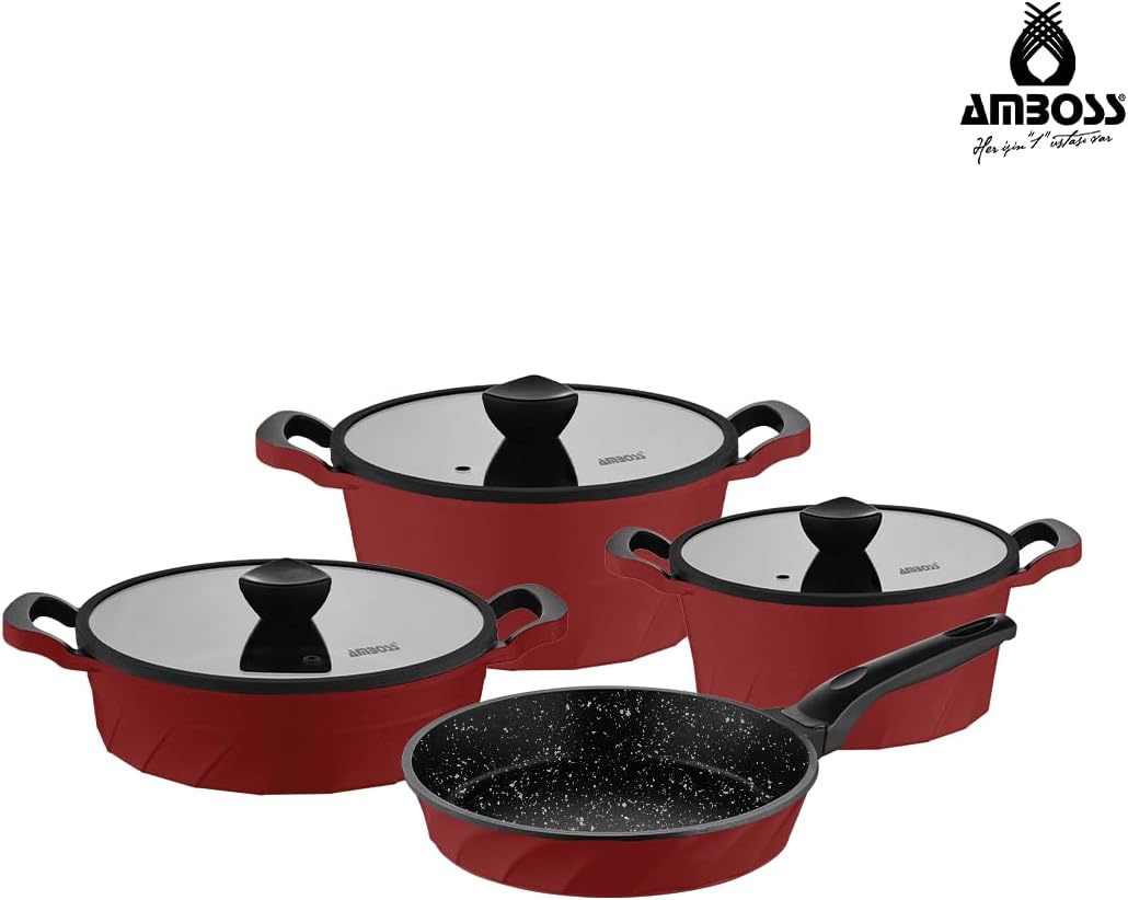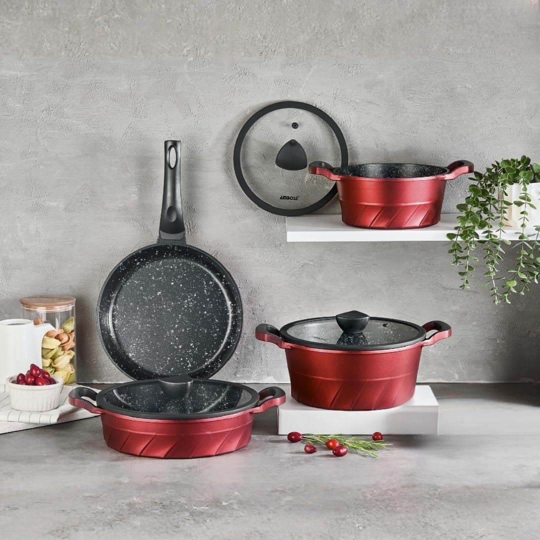 Vento 7 Parça Döküm Tencere Tava Seti Kırmızı