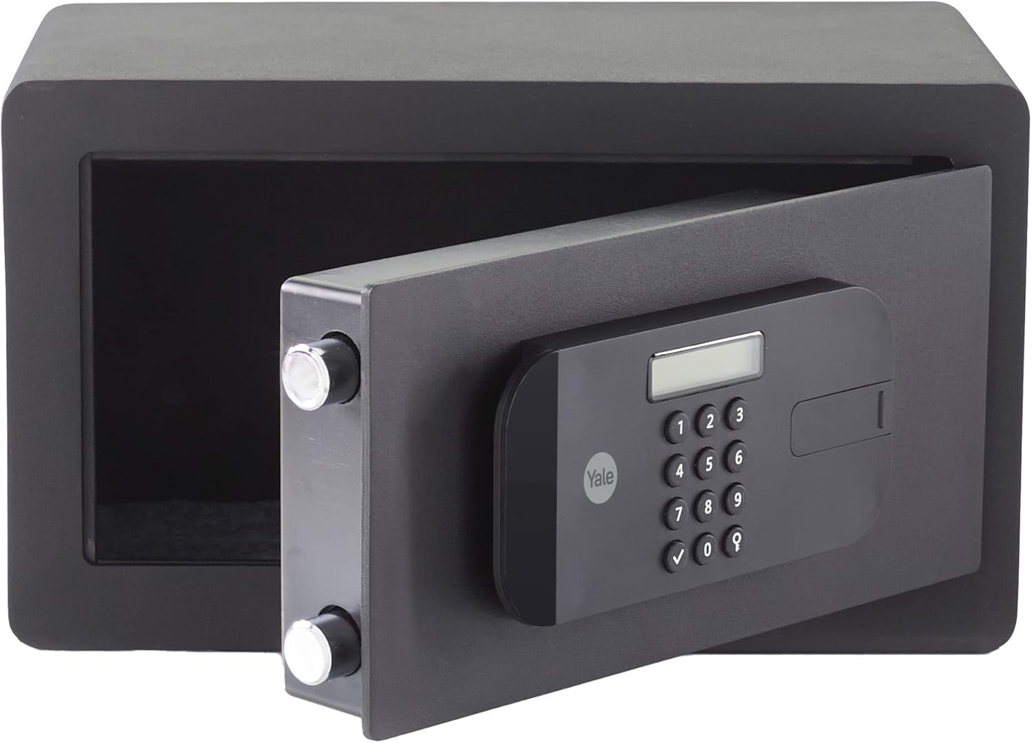 Yale LCD Ekranlı Küçük Boy Kasa Y-SS0000NFP – Standart güvenlik – Master Şifre – 2 Adet 6 Şifeli Anahtar – 20 x 31 x 20 cm – Siyah