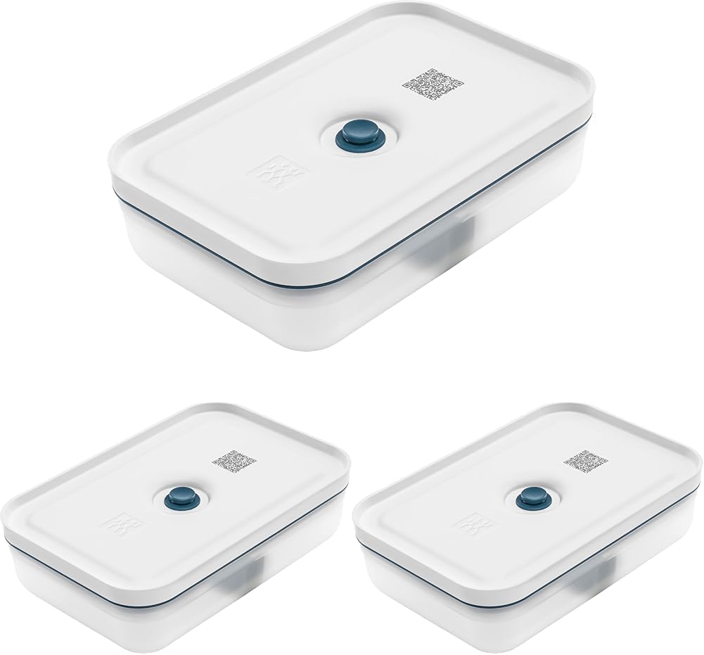 Zwilling Fresh & Save Vakumlu Yemek Taşıma Kabı, L Düz, Plastik, Yari Şeffaf-Akdeniz Mavisi 3lü paket