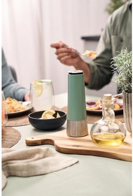 Artık tuz, karabiber ve diğer birçok baharatı farklı bir şekilde öğütebilirsiniz. ZWILLING Spices baharat değirmeni, modaya uygun adaçayı yeşili. Özel özelliği tasarımıdır: öğütücü üst uçtadır, böylece masaya baharat kalıntısı düşmez. İster karabiber, tuz, acı biber gevreği veya diğer baharatlar olsun: Sağlam seramik öğütücü hepsini küçük parçalara öğütür. İnce ile iri arasında serbestçe ayarlanabilir öğütme derecesi. Bir diğer avantaj: büyük dolum miktarı. Daha az yeniden doldurma, daha uzun öğütme, daha fazla kolaylık.