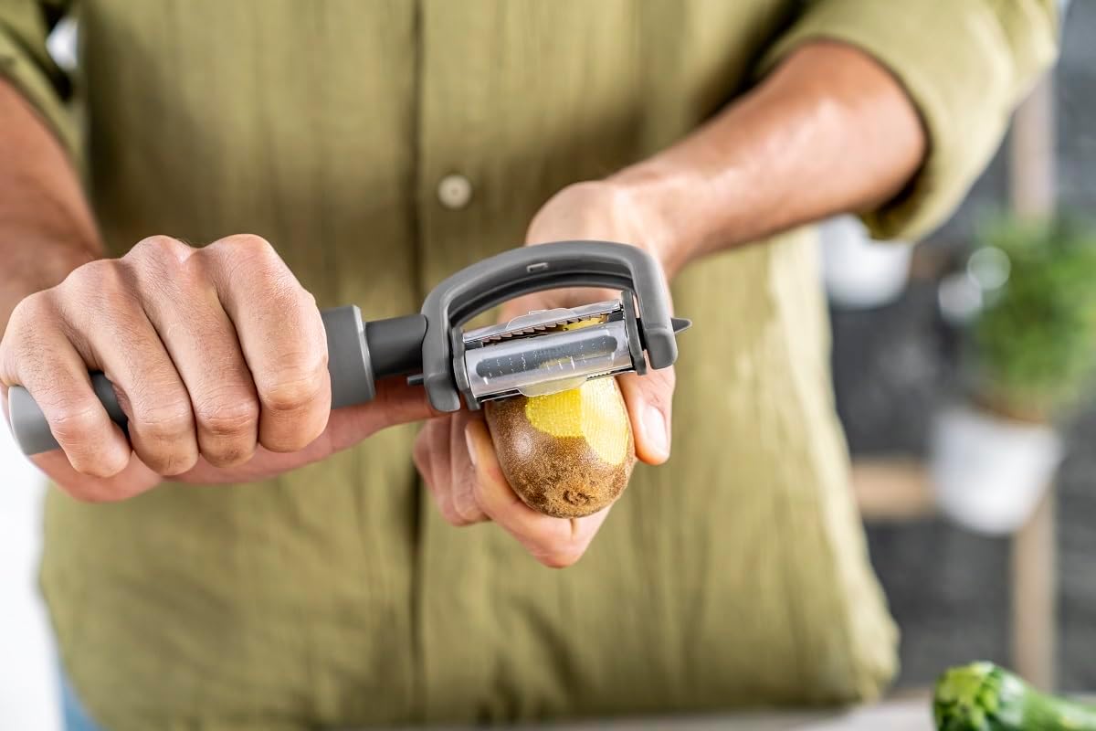Özellikler Üç değiştirilebilir bıçak: sert yiyecekler, yumuşak yiyecekler ve jülyen kesim için, iki soyucu tasarımı: Yuvarlak için I-şekli, uzun gıdalar için Y-şekli MotionBall teknolojisi: Harekete sahip soyma başlığı kesilecek ürüne uyum sağlar, koruyucu kapaklar içerir Hem sol hem de sağ elle kullanım için Paslanmaz ve bulaşık makinesinde yıkanabilir Teknik Özellikler Özellik Değer Ürün Boyutları […]
